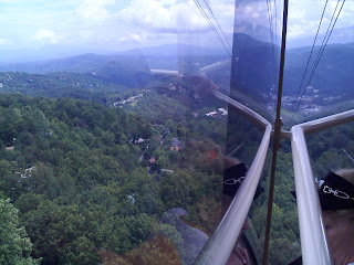 In order to Alpine Ski, our goal in going to Ober Gatlinburg, you have to trek fairly high into the mountains. The first leg involves taking a 15 minute tram ride up one part of a mountain. The tram ride itself was terrifying because it: